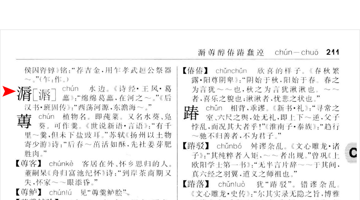 【第4_1楼】可参照商务印书馆的《古代汉语词典》第(1551)页 内容。非常感谢来自热心读者{:183.61.*.*}的纠错指正,经过我们的人工核对,本文已对相关内容进行了更正。再次感谢您为本文注音所作出的贡献。