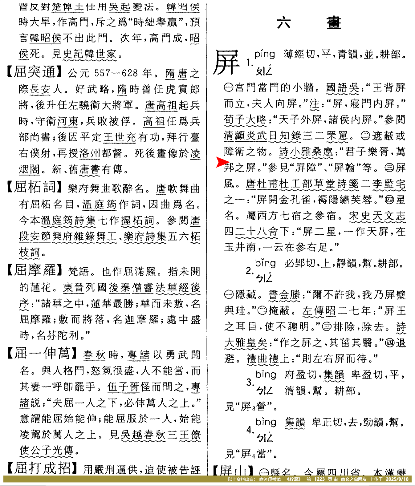 【第1_1楼】可参照商务印书馆的《辞源》第(1223)页 内容。非常感谢来自热心读者{:61.155.*.*}的纠错指正,经过我们的人工核对,本文已对相关内容进行了更正。再次感谢您为本文注音所作出的贡献。