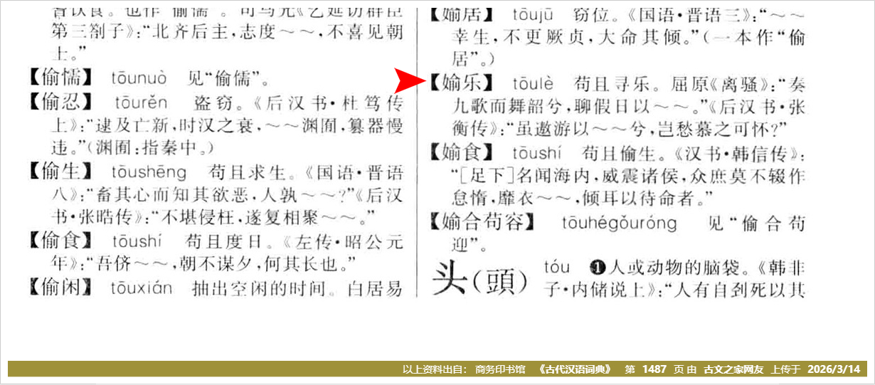 【第3楼】贡献条目聊假日以媮乐 中“媮”在这里应该读yú