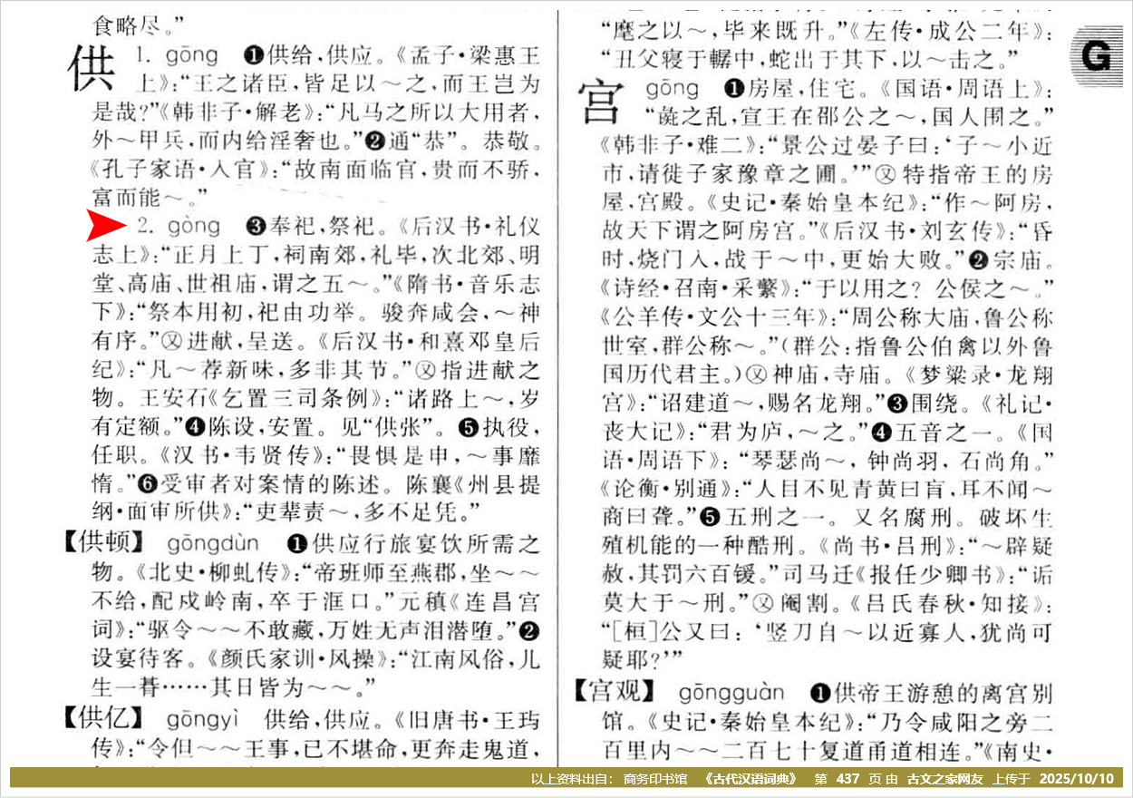 【第1楼】贡献条目供给神祇的供应读gōng;