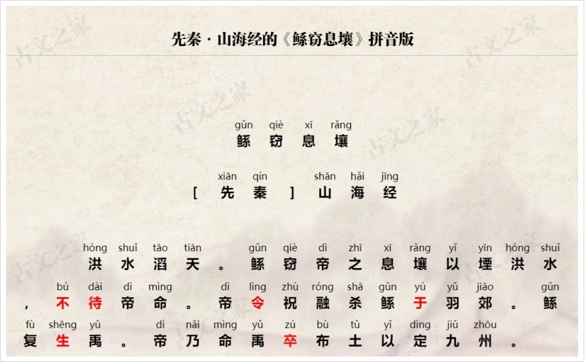 《鲧窃息壤》拼音版,可打印PDF文档下载山海经-文言文