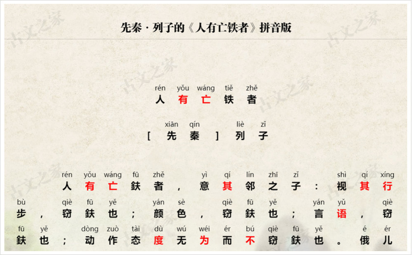 《人有亡铁者》拼音版,可打印PDF文档下载列子-文言文