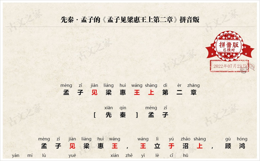 拼音校对参考书籍:《孟子》南京大学出版社,《孟子》中华书局,