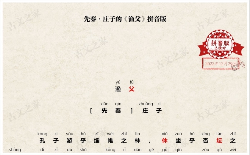 《渔父》拼音版,可打印PDF文档下载庄子-文言文