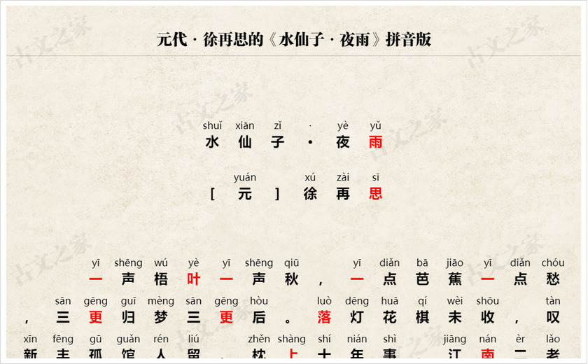 《水仙子·夜雨》拼音版,可打印PDF文档下载徐再思