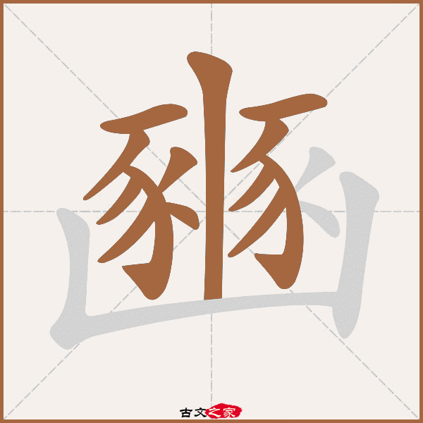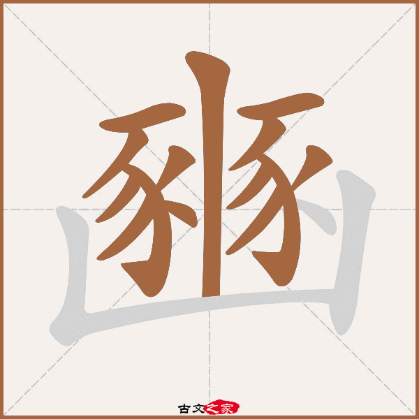 | 基础信息 | “豳”字,繁体为:豳,仓颉代码为:UMOO,四角号码:22770,五笔输入法:EEMKMGEE,uicode代码为:U+8C73,郑码为:GQGL,电码:-,规范字编号:6222, “豳”字,部首为:豕,总笔画:十七画,部外笔画:十画,字形分解:豕山(shishan),汉字构造:山豕豕,,汉字吉凶:-,属姓氏, 笔画顺序:一ノフノノノ丶丨一ノフノノノ丶フ丨, 笔画顺序读作:横撇折撇撇撇捺竖横撇折撇撇撇捺折竖, “豳”字在《康熙字典》位置:《康熙字典》第1198页 第17字, 宋本广韵中描述:-, 其它字典出处:[ 故训彙纂 ]:2168|2246.5,[ 康熙字典 ]:页1198第17, |