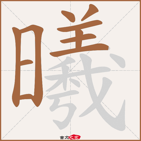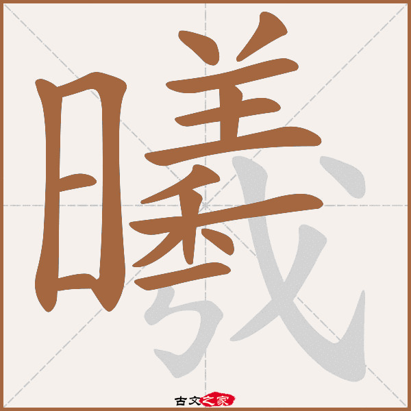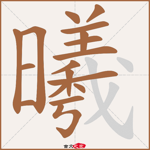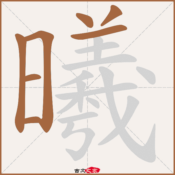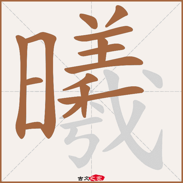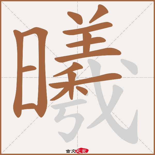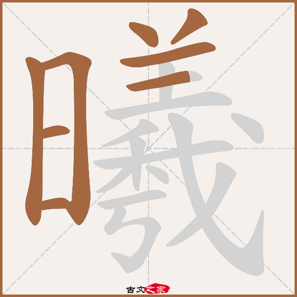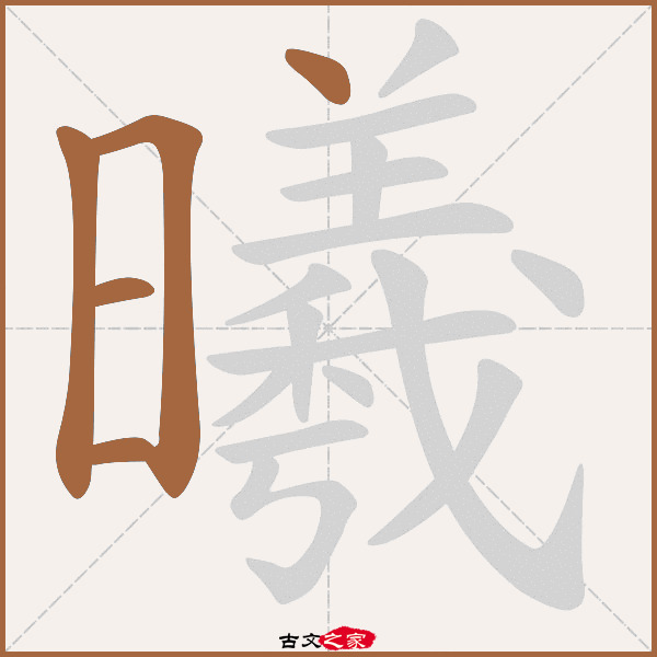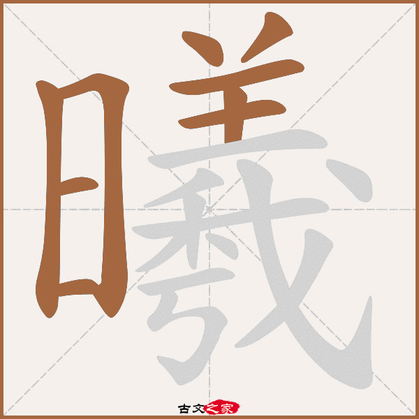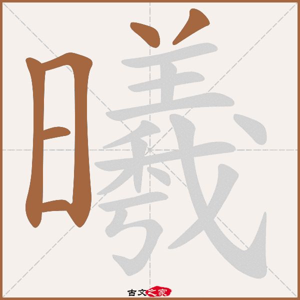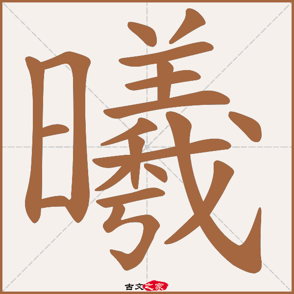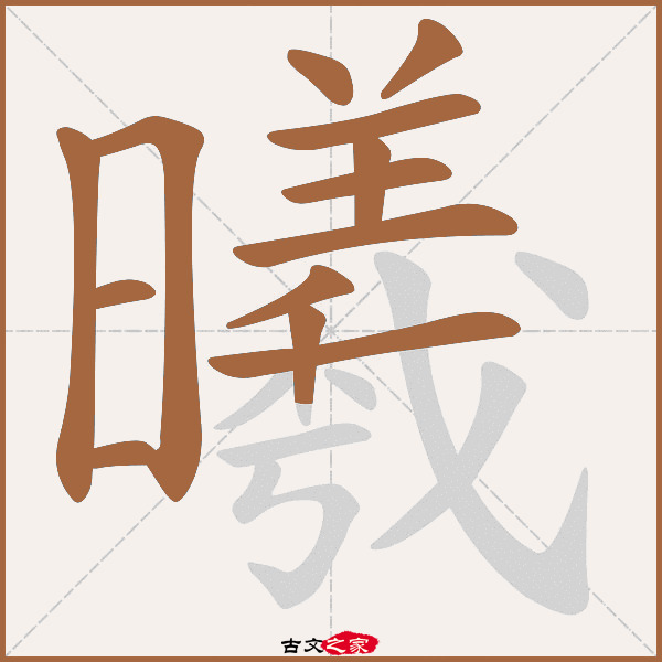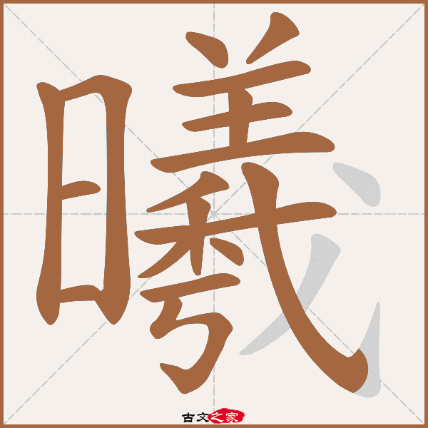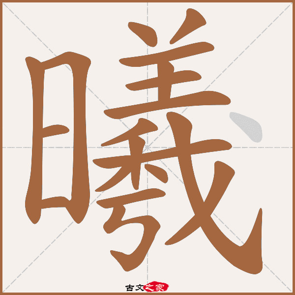| 基础信息 | “曦”字,繁体为:曦,仓颉代码为:ATGS,四角号码:68053,五笔输入法:JUGTJUGY,uicode代码为:U+66E6,郑码为:KUAZ,电码:-,规范字编号:6428, “曦”字,部首为:日,总笔画:二十画,部外笔画:十六画,字形分解:日羲(rixi),汉字构造:日羊禾丂戈,,汉字吉凶:-,属姓氏, 笔画顺序:丨フ一一丶ノ一一丨一ノ一丨ノ丶一フフノ丶, 笔画顺序读作:竖折横横捺撇横横竖横撇横竖撇捺横折折撇捺, “曦”字在《康熙字典》位置:《康熙字典》第501页 第33字, 宋本广韵中描述:-, 其它字典出处:[ 故训彙纂 ]:1042|1120.8,[ 康熙字典 ]:页501第33,[ 汉语字典 ]:卷2页1541第21,[ 辞 海 ]:卷6页4820第5, |