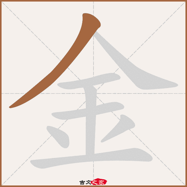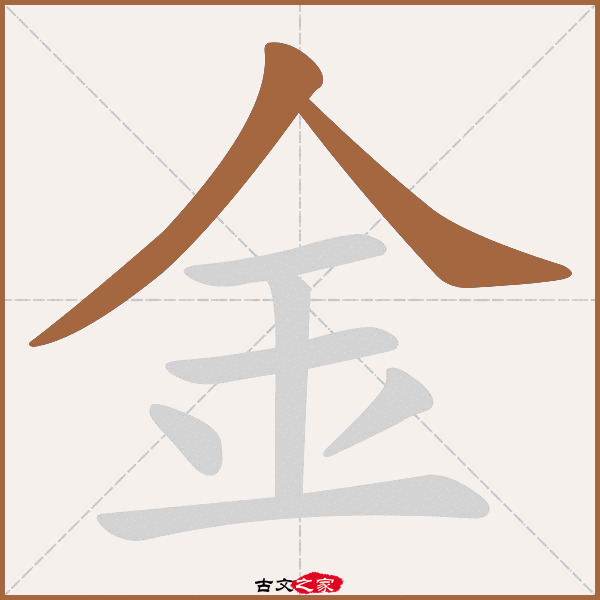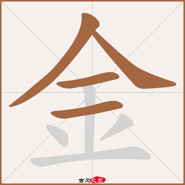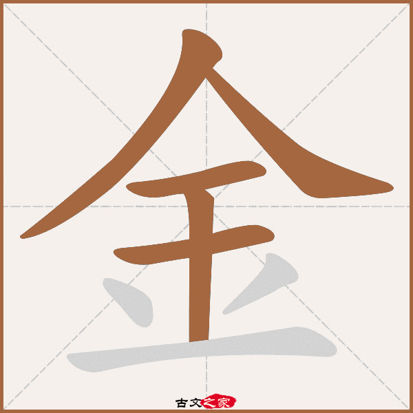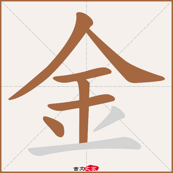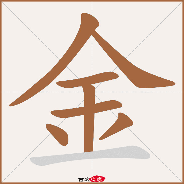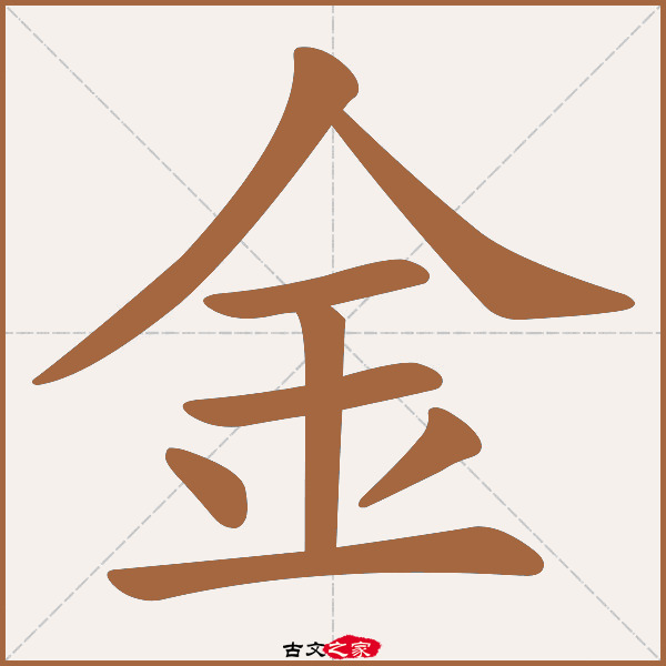 | 基础信息 | “金”字,繁体为:金,仓颉代码为:C,四角号码:80109,五笔输入法:QQQQ,uicode代码为:U+91D1,郑码为:PA,电码:-,规范字编号:1166, “金”字,部首为:金,总笔画:八画,部外笔画:十画,字形分解:人王(renwang),汉字构造:金,,汉字吉凶:吉,属姓氏, 笔画顺序:ノ丶一一丨丶ノ一, 笔画顺序读作:撇捺横横竖捺撇横, “金”字在《康熙字典》位置:《康熙字典》第1295页 第1字, 宋本广韵中描述:-, 其它字典出处:[ 古文字诂林 ]:10册,第23部,金部,1,[ 故训彙纂 ]:2359|2437.2,[ 说文解字 ]:编号9211,第14卷上,金部第1字,[ 康熙字典 ]:页1295第01, | |