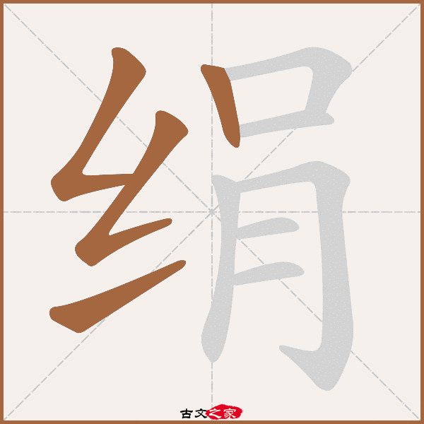 | 基础信息 | “绢”字,繁体为:絹,仓颉代码为:VMRB,四角号码:26127,五笔输入法:XKEG,uicode代码为:U+7EE2,郑码为:ZJQ,电码:-,规范字编号:2150, “绢”字,部首为:纟,总笔画:十画,部外笔画:七画,字形分解:纟肙(siyuan),汉字构造:纟口月,,汉字吉凶:吉,属姓氏, 笔画顺序:フフ一丨フ一丨フ一一, 笔画顺序读作:折折横竖折横竖折横横, “绢”字在《康熙字典》位置:《康熙字典》第924页 第021字, 宋本广韵中描述:-, 其它字典出处:[ 故训彙纂 ]:1743|1821.2,[ 康熙字典 ]:页944第25, |